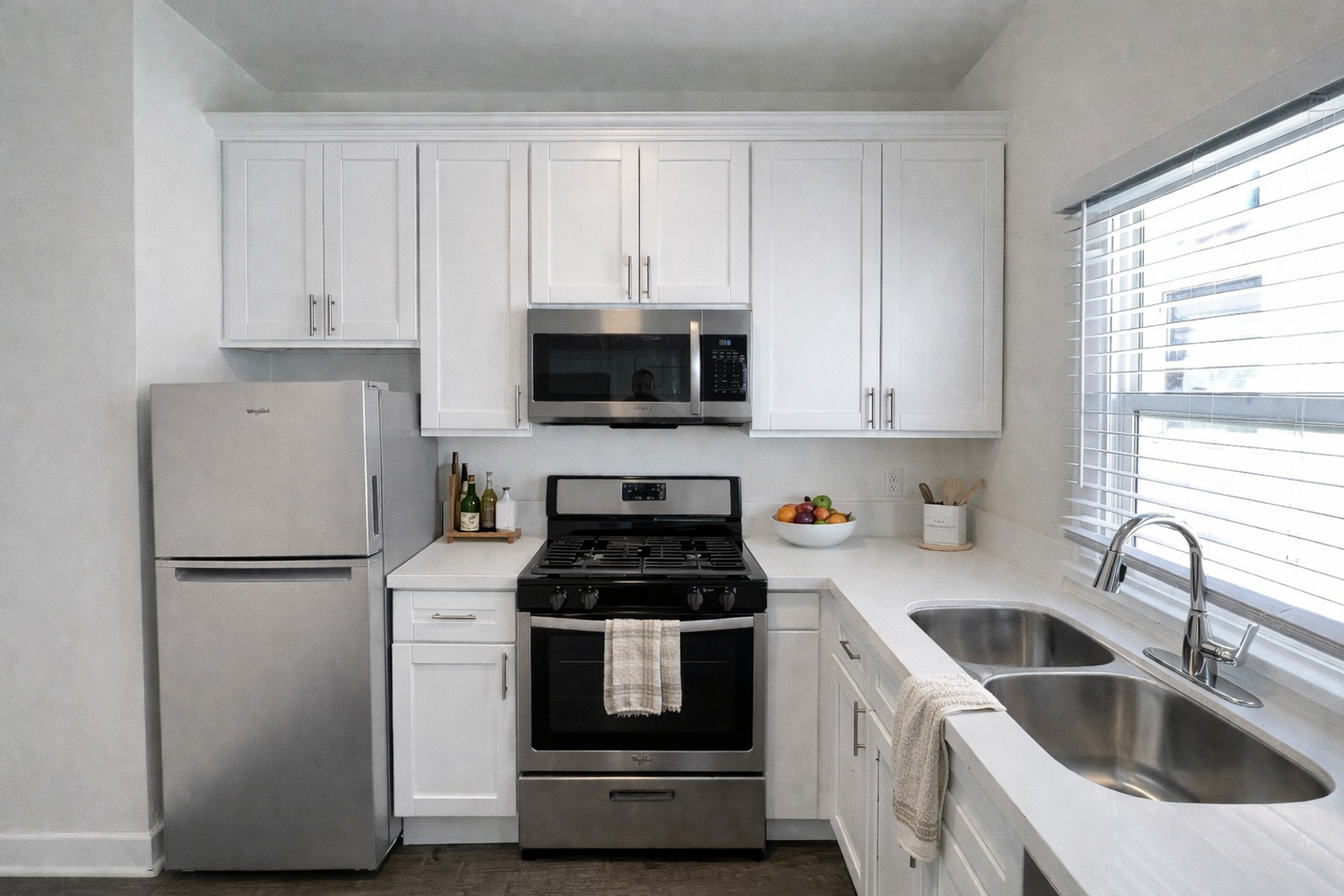 Fridge/stove/oven and built-in microwave are included. Building has security access.